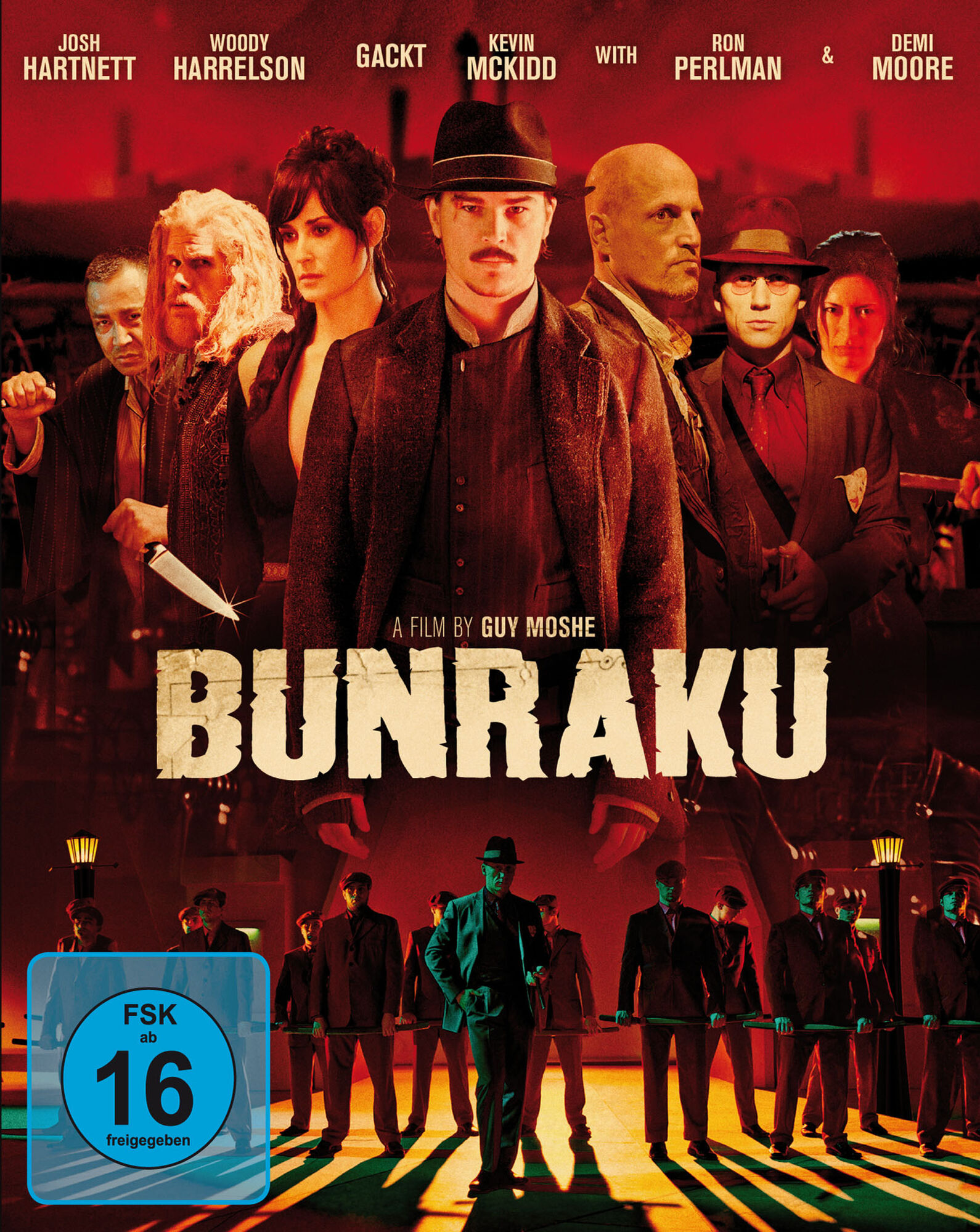 Mit „Bunraku“ wird uns wie schon mit „300“ und „Sin City“ ein visueller Leckerbissen präsentiert, der seinesgleichen sucht. Ein noch nie da gewesener Style, gepaart mit einer kultverdächtigen Geschichte und einer Top-Besetzung, angeführt von Josh Hartnett und Japans Superstar „Gackt“. Neben Hartnett haben die Produzenten von „Mandy Lane“ und „Red Cliff“ „Grey’s Anatomy“-Star Kevin McKidd sowie, Ron Perlman, Demi Moore und Woody Harrelson gewinnen können. Erzähler der Geschichte ist kein Geringerer als Mike Patton, Frontman der legendären „Faith no More“.
